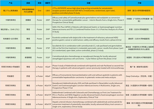 在消化系统肿瘤领域,PG产品相关研究共入选1项最新突破性摘要(LBA)、5项壁报和5项电子壁报,共11项研究。其中阿得贝利单抗入选4项研究、卡瑞利珠单抗入选3项研究。