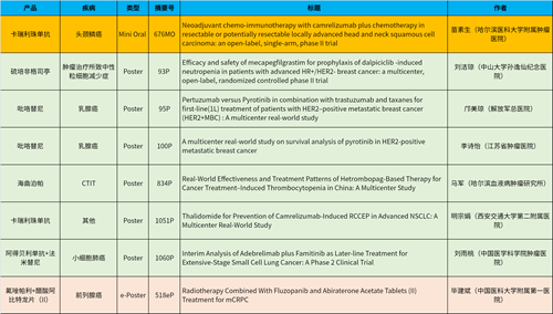 此外,PG医药自主研发的血小板生成素受体激动剂(TPO-RA)海曲泊帕在肿瘤治疗所致血小板减少领域、新一代长效G-CSF产品硫培非格司亭在肿瘤治疗所致中性粒细胞减少症领域各入选1项壁报展示。